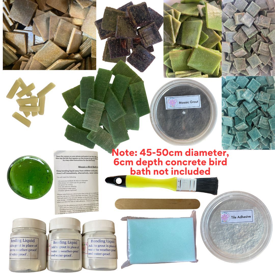This is a wonderful kit to give to a gardener, an outdoor enthusiast or someone who enjoys crafting. This kit contains everything you need to mosaic a bird bath. It has step-by-step written instructions and also included is a link to step-by-step video instructions.
