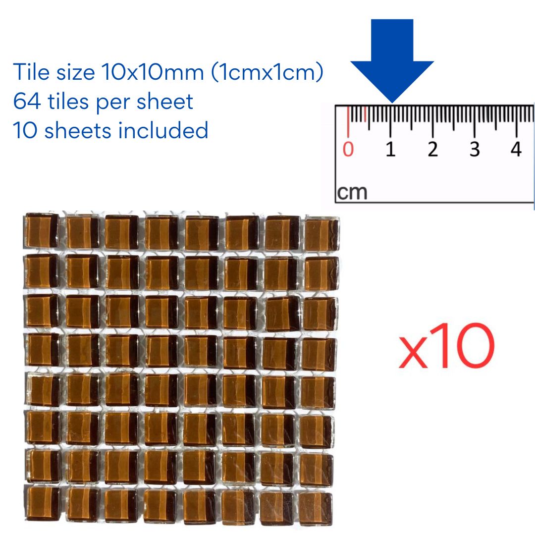 Mosaic Tiles- 10 x sheets of Brown Glass 10x10mm
