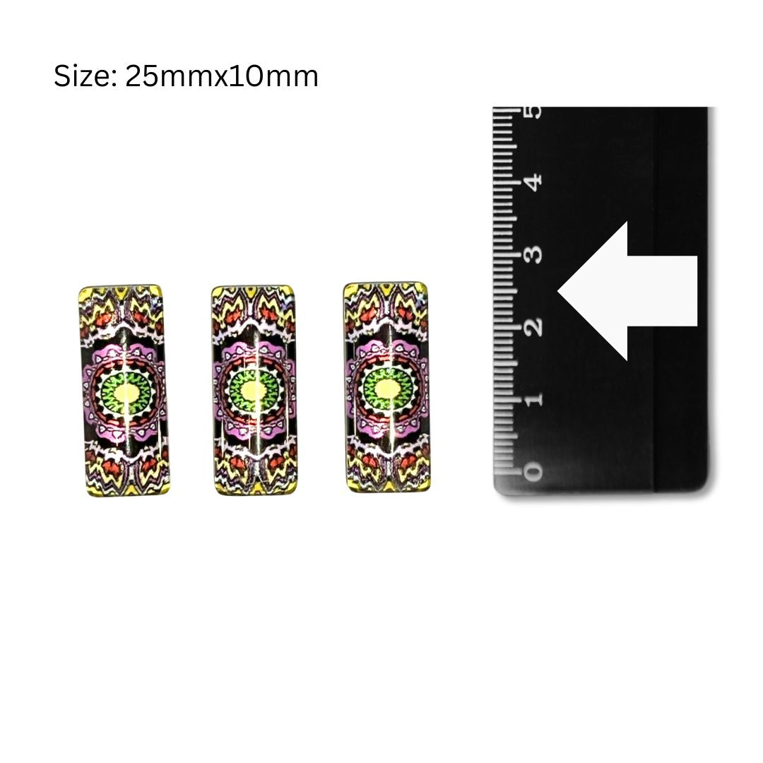 Glass Domed Inserts Rectangles (C)- Set of 3 (25x10mm)