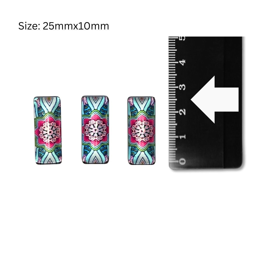 Glass Domed Inserts Rectangles (F)- Set of 3 (25x10mm)