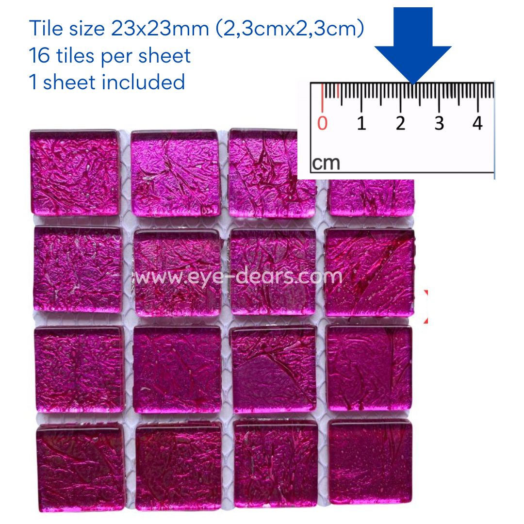 A beautiful array of 10 sheets of pink gold leaf mosaic tiles for crafting. These tiles can be used whole or cut into smaller pieces to make a stunning mosaic. They are a great addition to the Mosaic Starter Kit available from Eye-Dears as they provide even more variety of colours for the mosaic artist to be creative with!