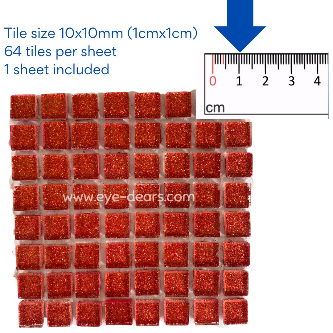 Mosaic Tiles - 10 x sheets of Red Glitter 10x10mm