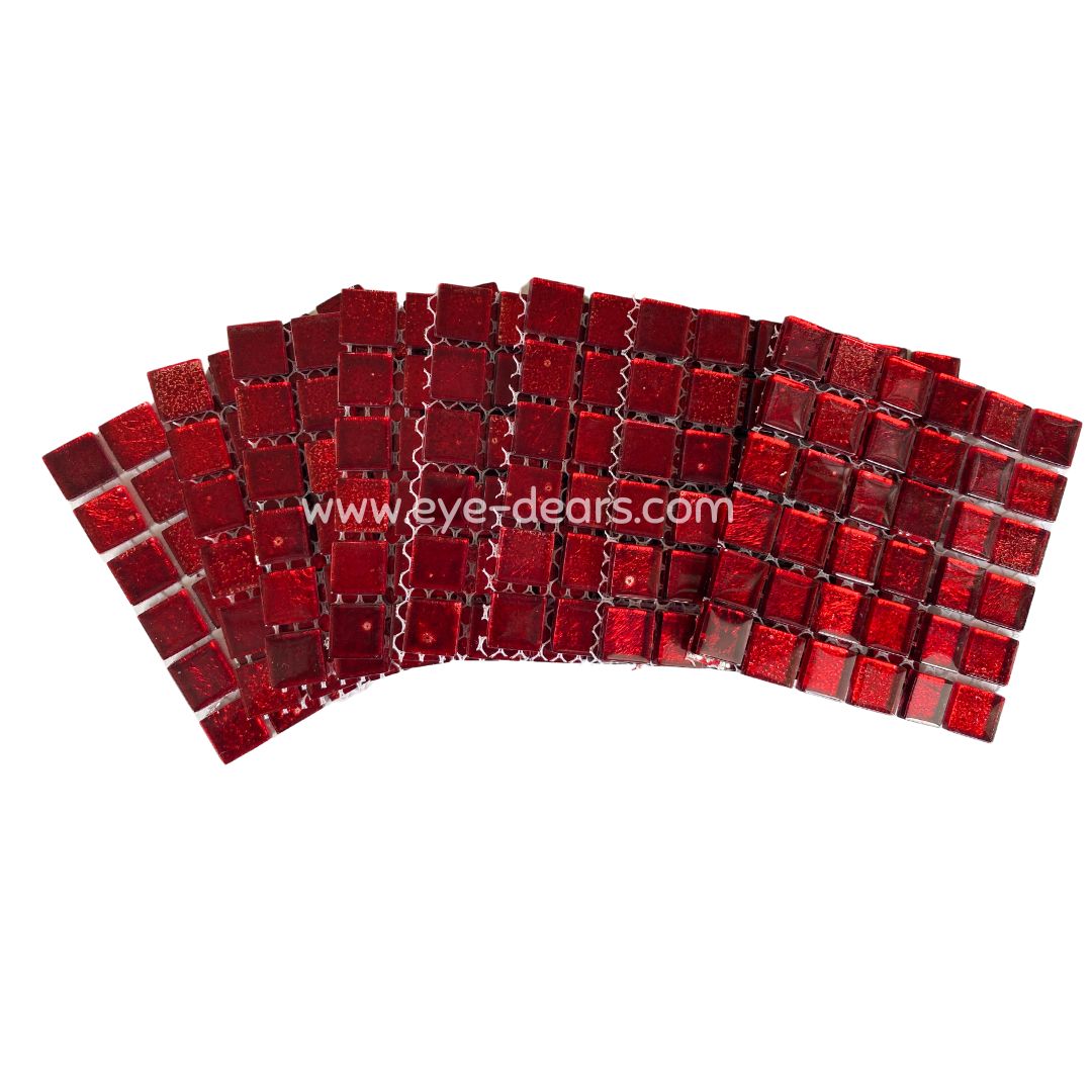 A beautiful array of 10 sheets of red gold leaf mosaic tiles for crafting. These tiles can be used whole or cut into smaller pieces to make a stunning mosaic. They are a great addition to the Mosaic Starter Kit available from Eye-Dears as they provide even more variety of colours for the mosaic artist to be creative with!